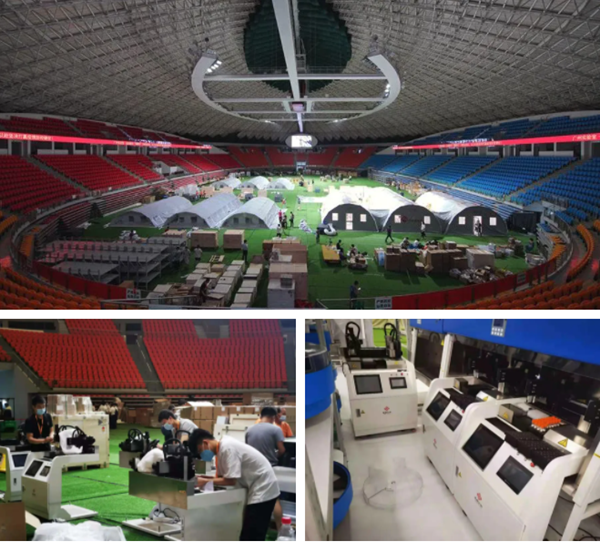 在主战场广州,PA电子生物工程师们全力以赴参与到广州市政府统一协调各单位搭建的气膜方舱实验室工作中。6月1日,广东首个气膜方舱实验室在广州体育馆正式投入使用;6月2日晚,4个气膜方舱实验室全面投入使用,核酸检测日产能达到12万管,可实现全天候收样检测,提高核酸检测效率。