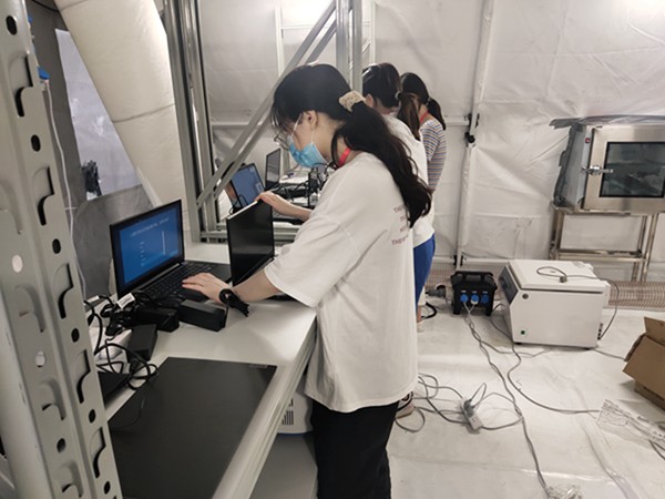 25日,在3组“猎鹰号”气膜实验室的仪器设备安装完成后,技术服务团队又马不停蹄将新送达的仪器设备安装到另外3组“猎鹰号”气膜实验室。与此同时,他们还需兼顾已启用的3组实验室的仪器设备运行、实验人员操作培训等。