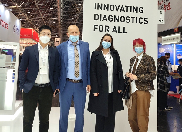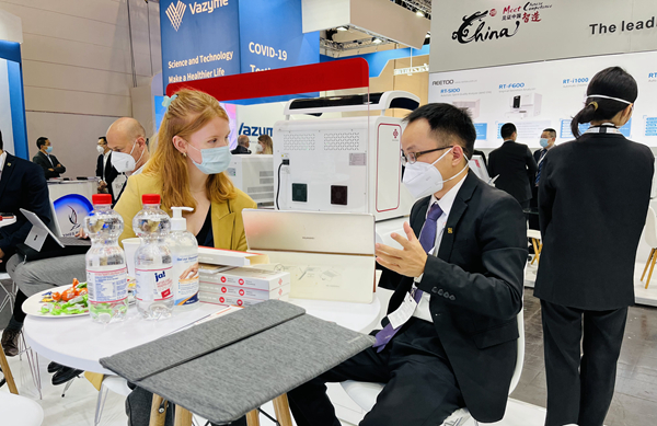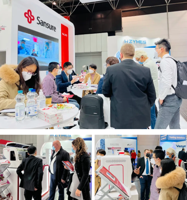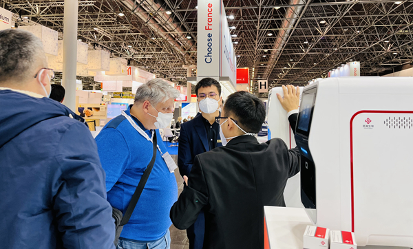 在PA电子展台,“全自动解决方案”“半自动解决方案”“新冠整体解决方案”,以最大程度满足不同国家和地区客户、不同应用场景检测需求的特点,获得了众多来访国际客户的好评。尤其是iPonatic四通道产品,以其便捷、易操作、检测时间快、检测项目多等优势吸引了会场一大波新老“粉丝”的目光。