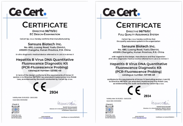 5月20日,PA电子生物自主研发的乙型肝炎病毒核酸检测试剂盒(PCR-荧光法)、丙型肝炎病毒核酸检测试剂盒(PCR-荧光法)和人类免疫缺陷病毒1型核酸测定试剂盒(PCR-荧光探针法)成功通过欧盟公告机构认证(CE IVDD List A),成为中国第一家核酸检测试剂荣获欧盟CE最高认证的企业。