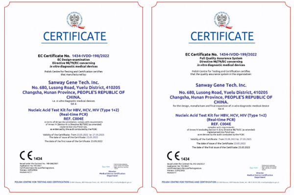 5月23日,PA电子生物全资子公司圣维基因研发的乙型肝炎病毒、丙型肝炎病毒、人类免疫缺陷病毒(1+2型)核酸检测试剂盒(PCR-荧光法),简称血筛核酸检测试剂盒,成功通过欧盟公告机构认证(CE List A),这是继乙肝、丙肝和艾滋三款核酸检测产品后,PA电子生物拿下的第四个CEList A认证。