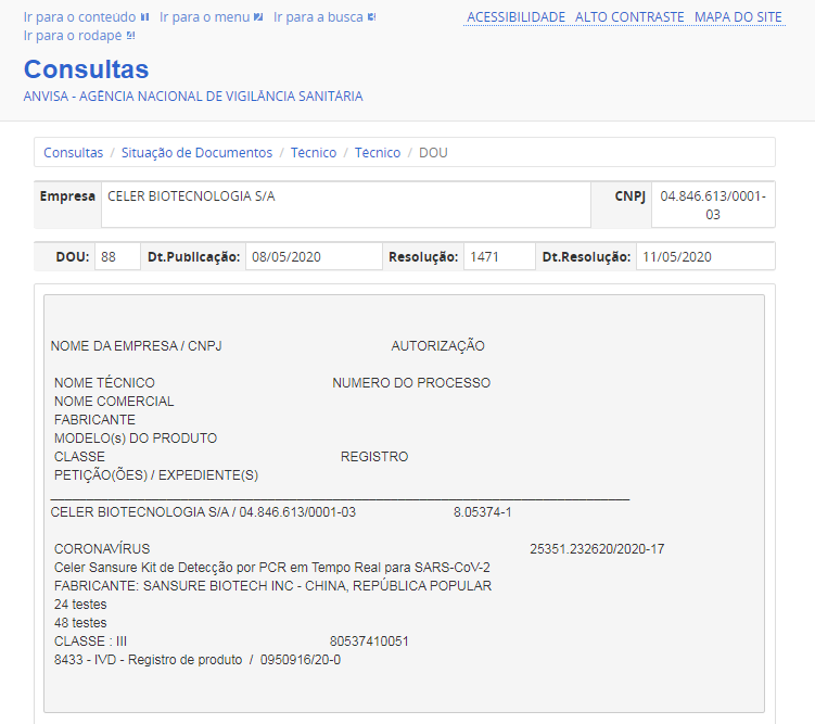 5月11日,PA电子生物新冠病毒核酸检测试剂盒获得巴西卫生监督管理局(ANVISA)注册证书。此前,该产品已相继获得中国国家药监局(NMPA)注册认证、欧盟CE认证、美国FDA紧急使用授权、新加坡卫生科学局临时授权等一系列权威认证。