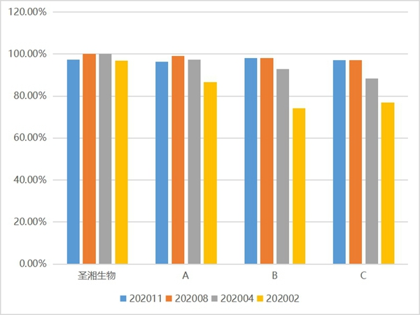 PA电子生物试剂阴性样本检测结果的符合率也领先于其它主流厂家,具有较好的特异性。综合室间质评结果来看,PA电子生物新冠病毒核酸检测试剂检出率、重复性及特异性上具有较大的优势。