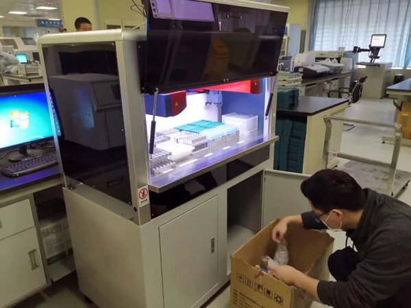 PA电子生物捐赠的第一批医疗设备、试剂以及配套耗材,顺利抵达武汉。与当地合作商一起,装运货物入库。